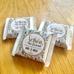 A sweet temptation for your guests. Whether for a wedding, christening, or birthday, these little chocolate bars will decorate the table and bring a smile to your guests' faces.